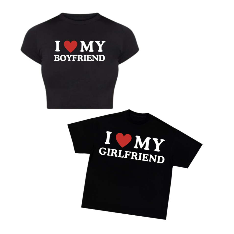 Declare your love for your significant other with our I heart Couples Combo! Featuring matching tees, our I ♥️ My girlfriend tee and I ♥️ My Boyfriend Baby Tee are the perfect way to celebrate Valentine's Day. Show your love and devotion with this stylish and romantic combo.